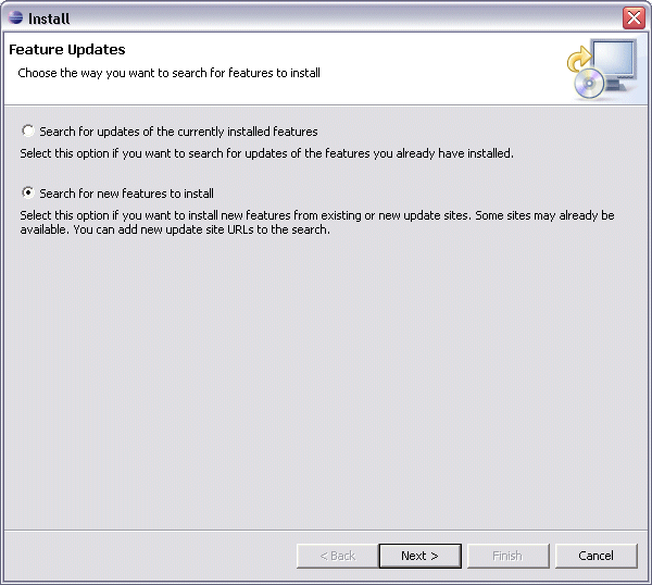 Check the box for Knopflerfish update site and press finish. If the update site is found you will see the features available on this site. Check the Knopflerfish OSGi IDE you wish to install.